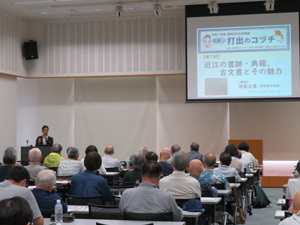 10月15日(水)に実施しました、滋賀の文化財講座「花湖さんの打出のコヅチ」第7回。今年度最後となる会場には、たくさんの受講生がご来場くださり、(地味と思われがちな?)書の世界について、より理解を深めるべく、話に耳を傾けてくださいました。