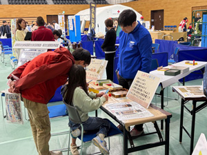 3月21日(土)、「しがわーくフェスタ2025」に琵琶湖文化館として出展をしました。このイベントは、滋賀県中小企業青年・団体中央会の主催で、お仕事体験・学習イベントとして今年で三回目となります。会場は草津市YMITアリーナで、「しがの仕事を親子で楽しみながら体験できる!」がコンセプトとあって、会場には県内の小学生以上の子どもたちと家族の皆さんが参加しました。