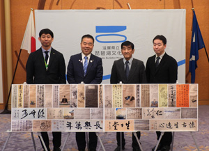 そしてこの日のために!当館にて、寄贈作品の写真を使用した特別パネルをご用意♪♪♪寄贈していただいた作品のほんの一部ですが、近江ゆかりの貴重な作品がこれだけ並ぶと、思わずうっとり✨・・・です(笑)。