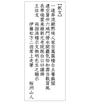 琵琶湖文化館に所蔵される書跡は、伊藤博文、松方正義等と東京・両国にて宴席に出た際に、明時代の書家・文徴明の書と同じ韻を踏んで詩を作り、その場で揮毫した席書です。上質な絹本に、七言古詩56文字を澱みなく流れる筆捌きで書き上げたもので、江戸城を示す「卅六城門」の開城から維新政府への時代の転換を表したものです。 中井弘の先代の滋賀県令である籠手田安定は、琵琶湖疎水計画の実施に反対しています。その理由は、景観の保全問題、滋賀県が京都府下に編入されることへの危惧でした。計画実施の支障となると判断されたためか、籠手田は県令を辞任し、元老院への転出を余儀なくされます。中井が籠手田の施策とは異なり、琵琶湖疎水計画を推し進めることができたのは、薩摩藩出身という地縁と、伊藤、松方等との関係性の構築が背景にあったと思われます。 ( 寺前 公基 ) ![]() |