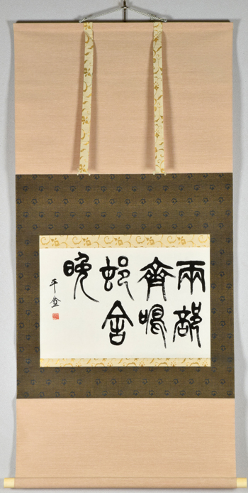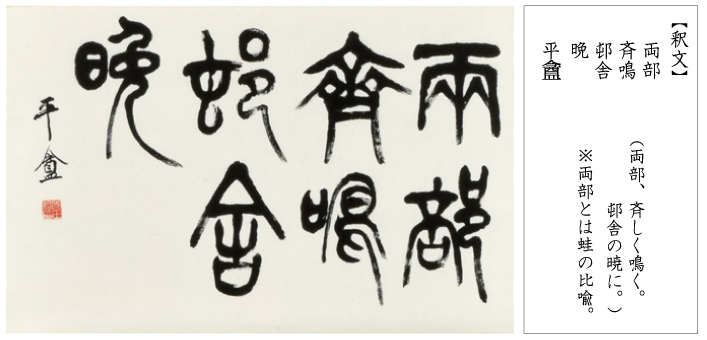 滋賀県は園田湖城のほか、現在も使用されている明治以降の天皇御璽を拝刻した安部井櫟堂(1805~1883・彦根出身)も輩出しています。篆刻家たちは、書の世界で少数派であった篆書の芸術性に着目し、優れた篆書作品を遺しています。この2種の書もまた、篆書の優品といえます。