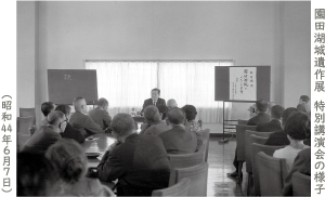 この遺作展は、現・琵琶湖文化館の本館2階陳列室にて開催され、15日間の展示期間とはいえ、弟子や関係者により集められた湖城作品が一堂に会しました。会期中には講演会も開催され、約60名の受講者が集まりました。