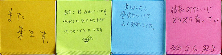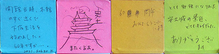 安土城考古博物館で令和3年2月6日~3月21日まで開催した、企画展 「琵琶湖文化館の『博物誌』浮城万華鏡の世界へ、ようこそ!」。会場にメッセージボードを設置し「開館60周年を迎える琵琶湖文化館に、『楽しいメッセージ』をお寄せください」と呼びかかたところ、たくさんの方に参加していただくことができました。