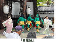 そうした中でこのたび、石山寺第50世座主であった故・鷲尾光遍(わしお・こうへん)師が作成した「青鬼踊」の歌詞原稿を発見しました。「青鬼踊」は、石山寺で毎年5月に行われる青鬼まつりの中で、蛍の精と青鬼が酒を飲み交わして踊るもので、唄の作詞を光遍師が手掛けられました。長らく踊りは絶えていましたが、2019年の令和改元を祝って復活し、令和4年は5月15日に行われました。そこで、折しも発見された原稿を青鬼まつりの開催期にあわせて石山寺豊浄殿で展示公開し、広く観覧に供したいと考えました。